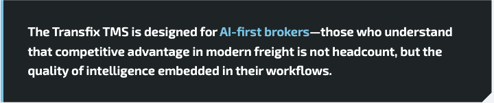 The brokers who ran the former Transfix brokerage at a top-five scale weren't operating on hypothetical workflows. They were moving freight, managing carriers, hitting margins, and serving shippers—all on the same core platform that Transfix now makes available to brokerages ready to compete at that level.