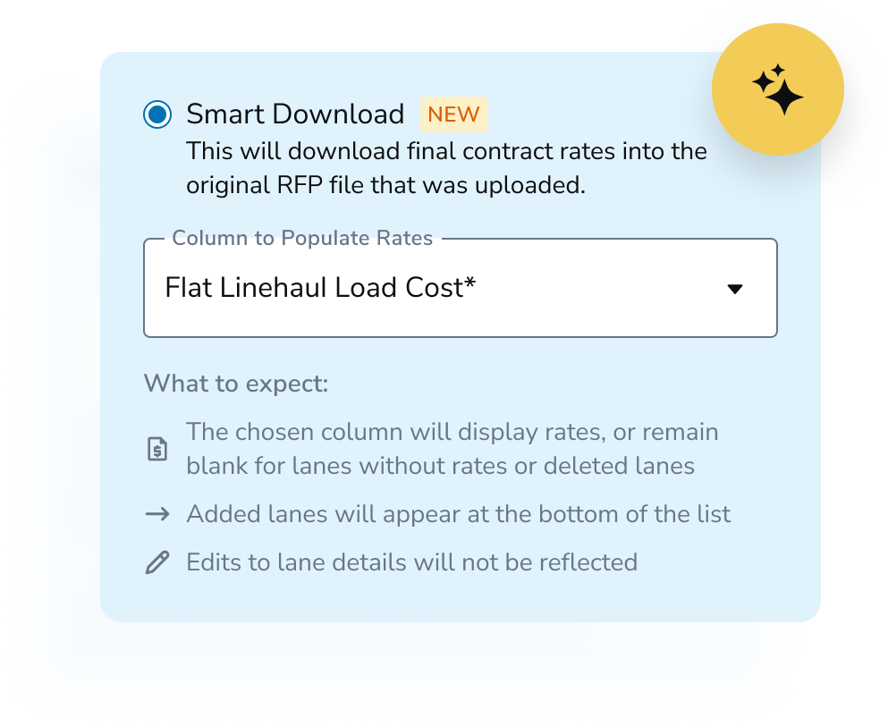 Smart Downloads—a powerful companion feature that will let you export bids in the shipper’s original format for a complete, round-trip RFP experience.